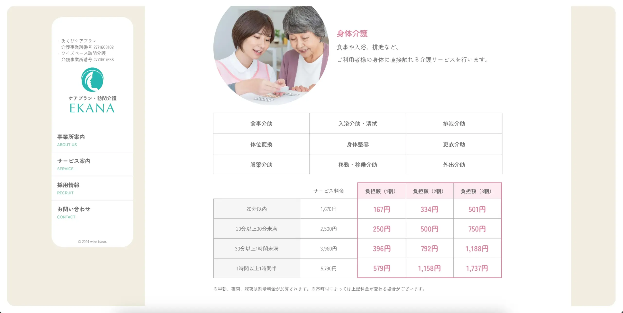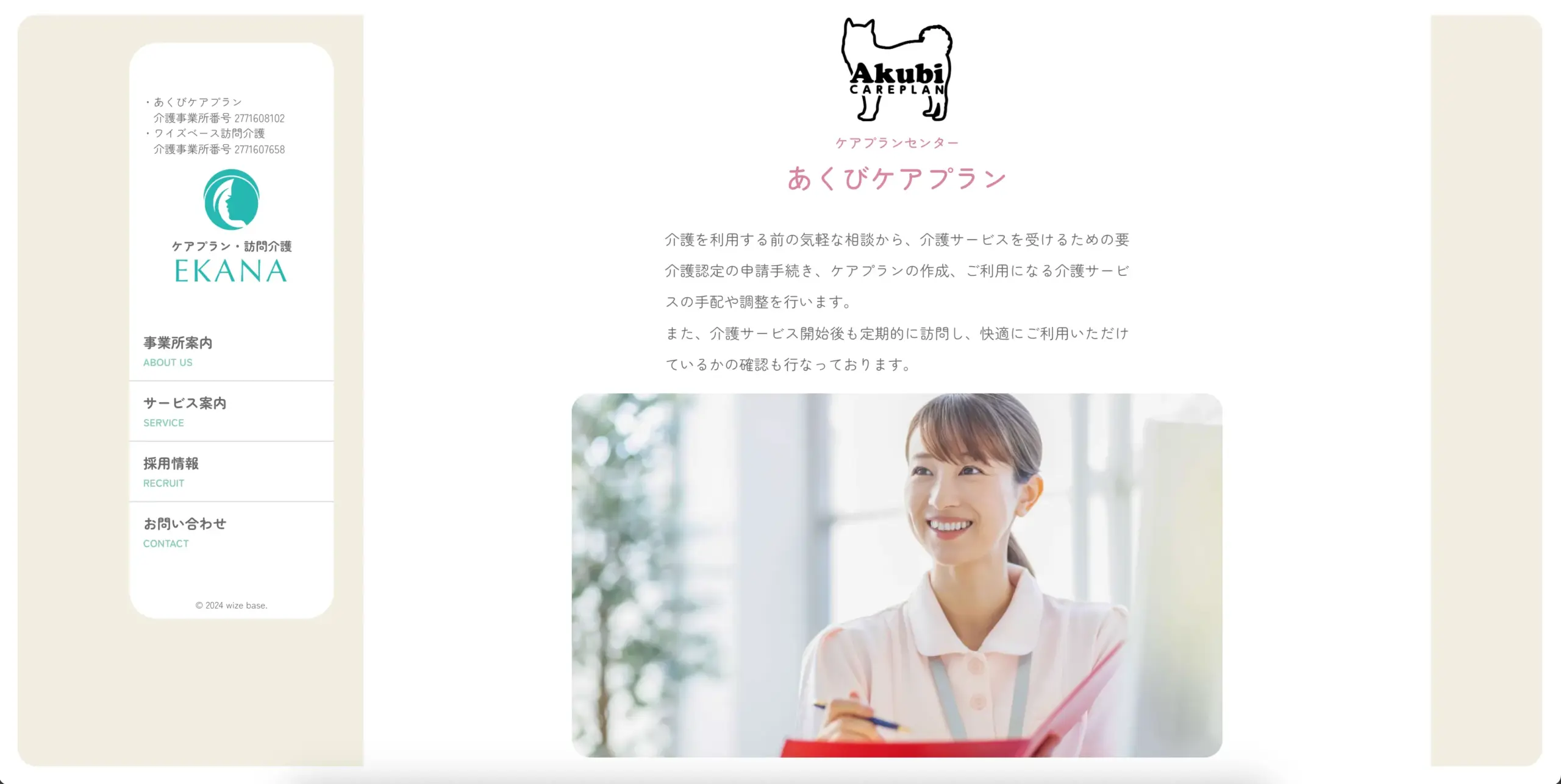 介護サービスのサイトでは、「やさしさ」と「信頼性」のバランスが重要です。