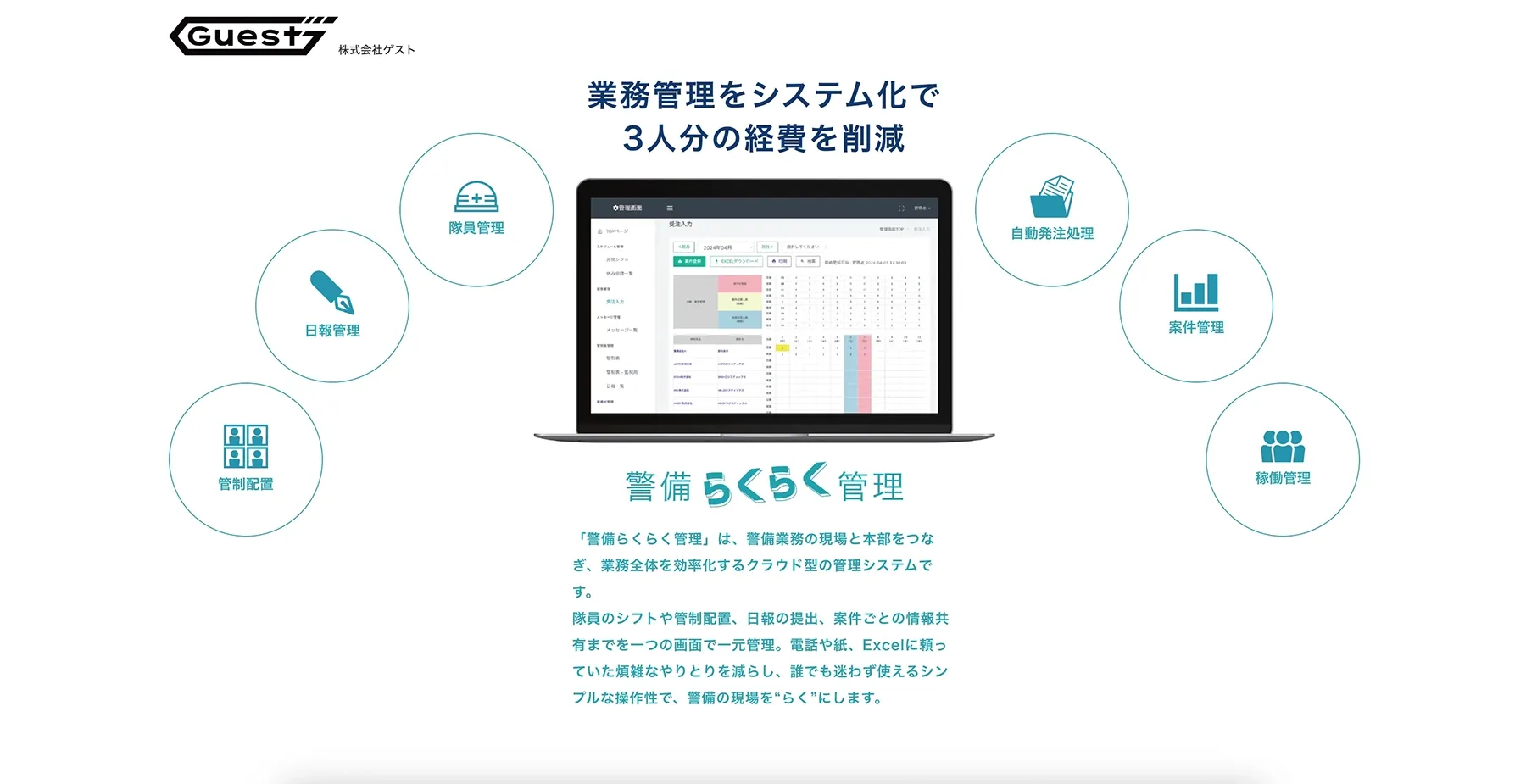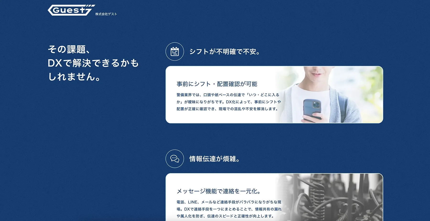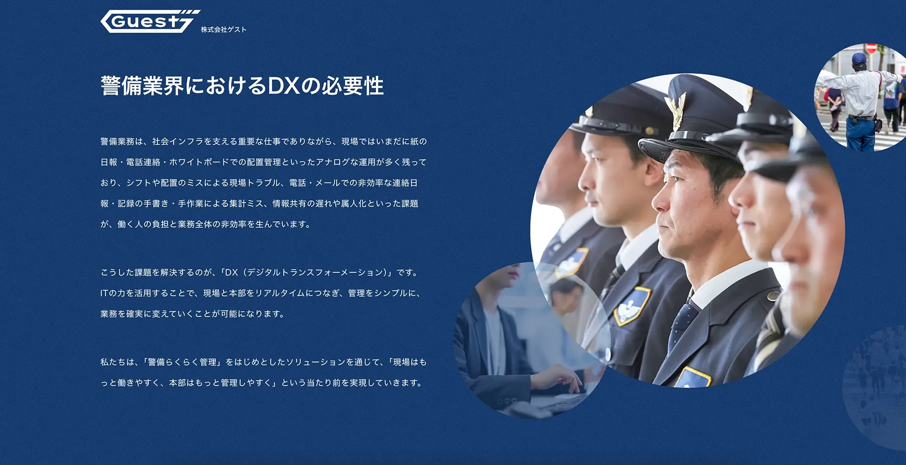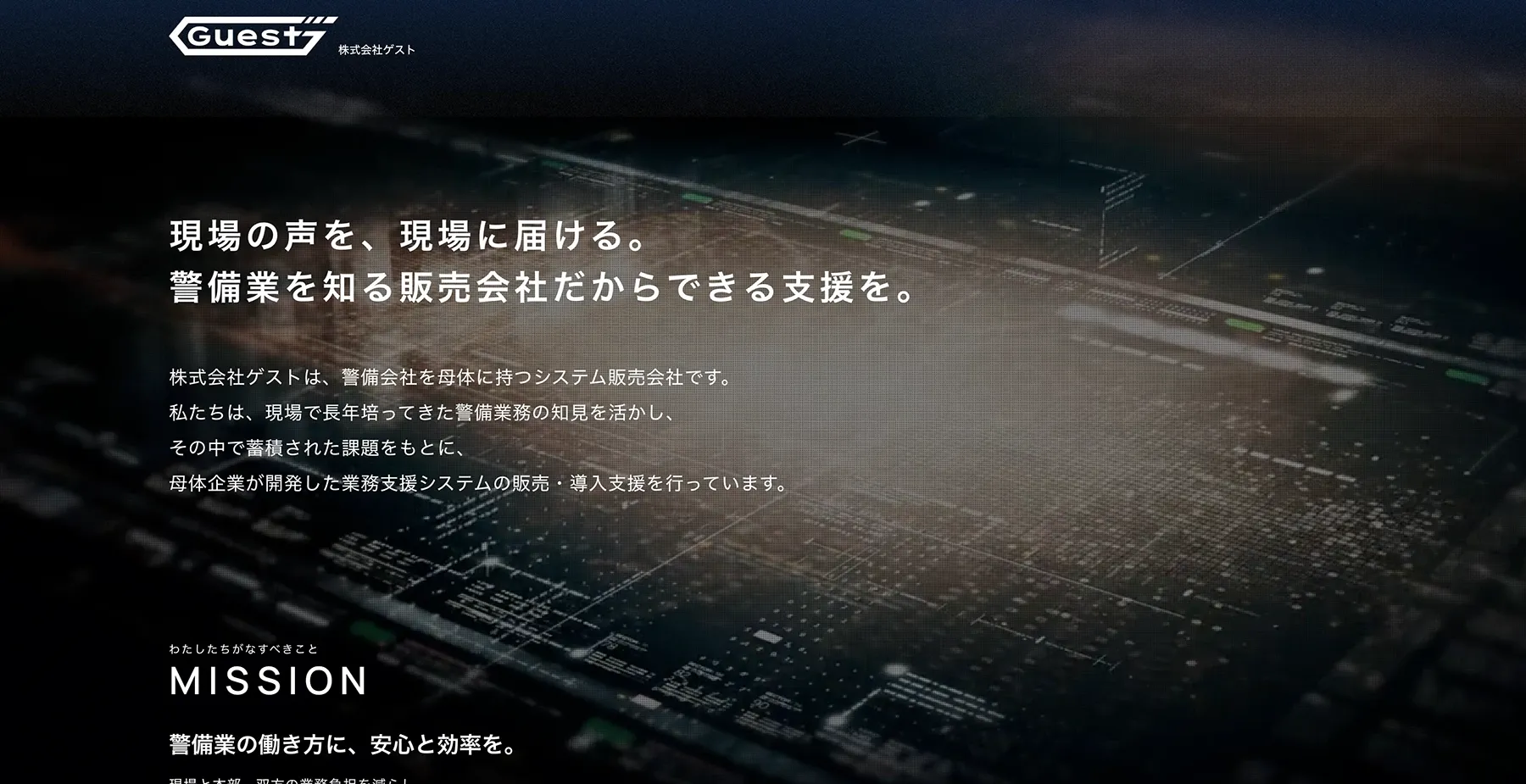 警備業務のデジタル化を推進する「株式会社ゲスト」様のコーポレートサイトを制作しました。